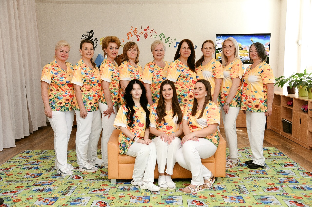 Zľava: Viera Fatľová, Hilda Puterová, Mgr. Katarína Remperová, Mgr. Ivana Zajaková, Mgr, Jana Polláková- riaditeľka MŠ, Jana Kuchenová, Adriana Dachová, Gabriela Šuhajová, Mgr. Iveta Živnerová, Simona Haľachová, Mgr. Dana Kuchenová, Patrícia Regecová.